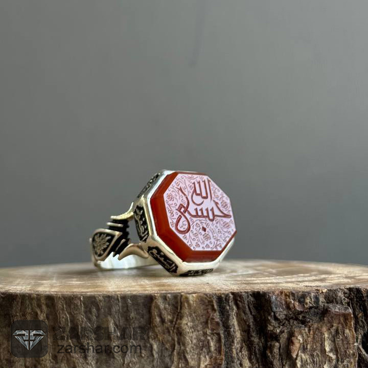 درخشش عقیق یمنی با حکایتی از توکل، انگشتر «حسبی الله» را به اثری هنری و روحانی تبدیل کرده است. این انگشتر، ترکیبی از ظرافت، اصالت و معنویت است که با هر نگاه، حسی از آرامش و اطمینان را به ارمغان میآورد.