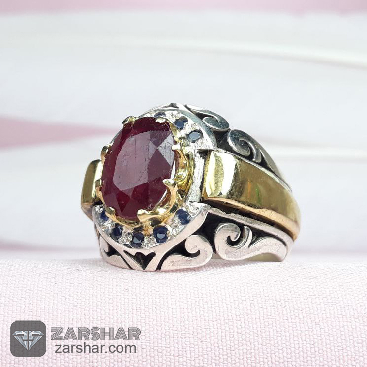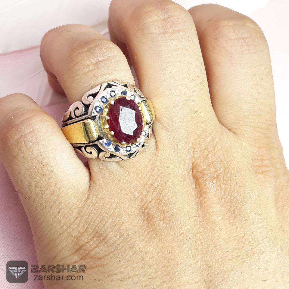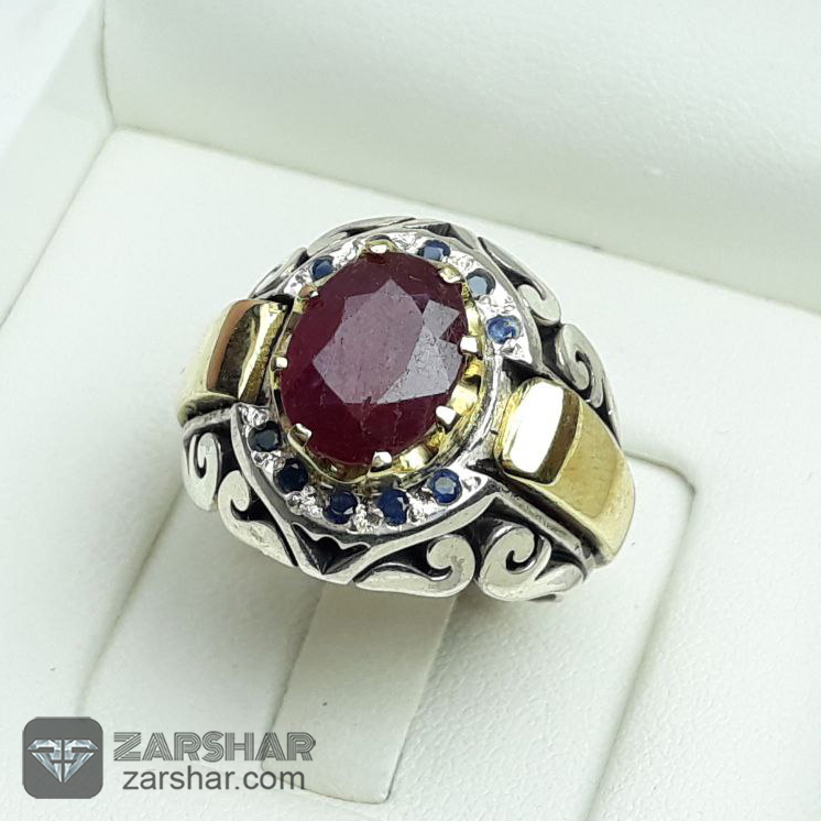 انگشتر یاقوت سرخ مخراج یاقوت کبود