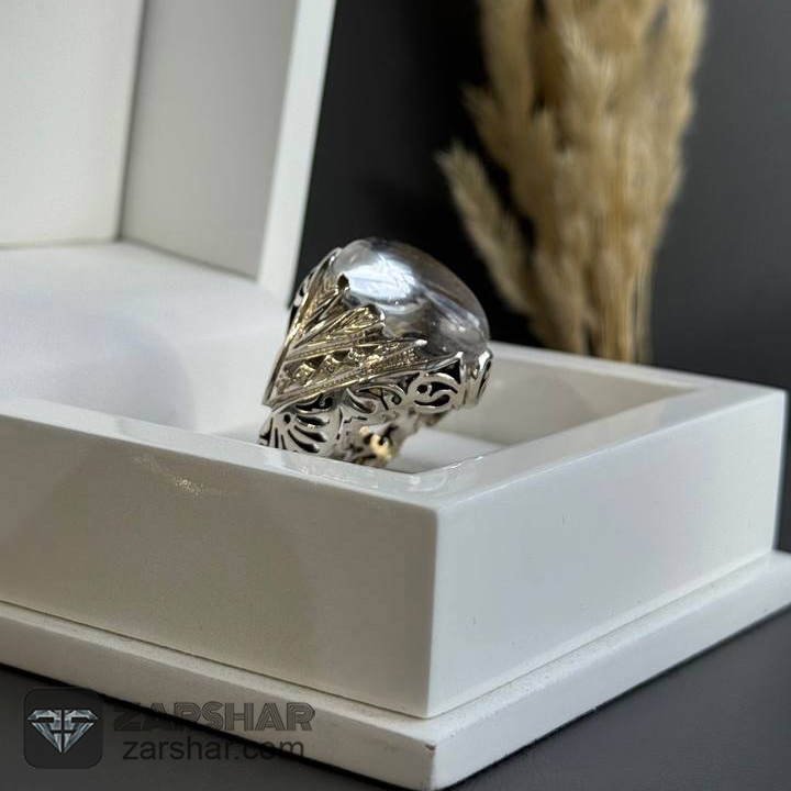 این انگشتر نفیس، با نقره عیار ۹۲۵ و طراحی خلاقانه، نمونه‌ای از هنر اصیل ایرانی است. رکاب دست‌ساز و آینه‌کاری ظریف آن، نشان از دقت و ظرافت هنرمندان زرشار دارد. ما در فروشگاه زرشار، با وسواس و دقت فراوان، بهترین و باکیفیت‌ترین محصولات را برای شما عزیزان فراهم می‌کنیم.