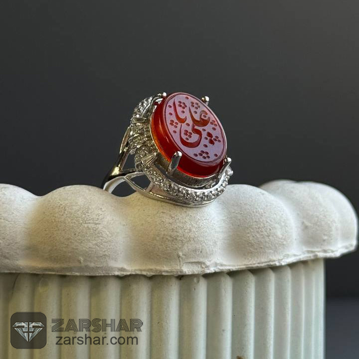 درخشش عقیق سرخ در کنار خط زیبای «یا علی»، این انگشتر زنانه را به اثری هنری بدل کرده است که فراتر از یک زیور، گویای اعتقاد و ارادت است. این انگشتر با رکاب نقرهای خوشتراش و آبکاری رادیوم، جلوهای بینظیر دارد و برای بانویی طراحی شده که به دنبال تلفیقی از زیبایی، ارزش و معنویت است.