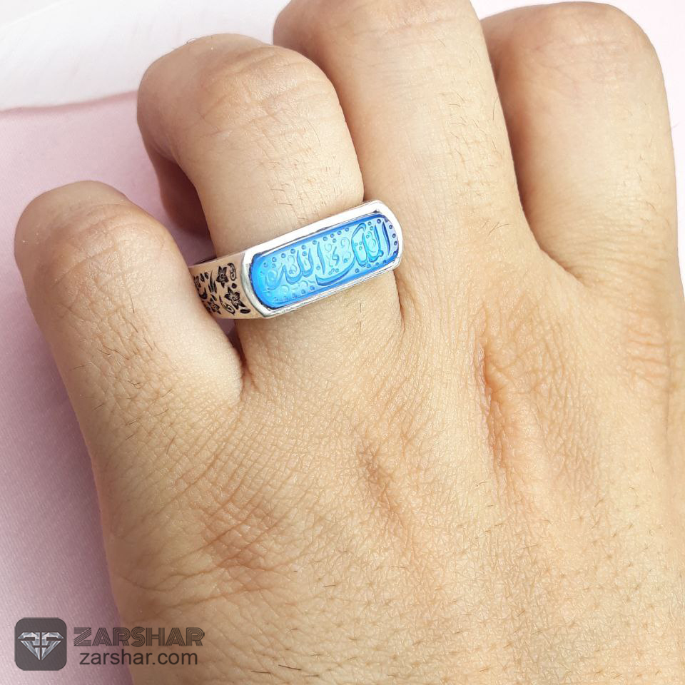 انگشتر عقیق آبی الملک الله با خط درجه یک و الزامات خیره‌کننده‌ای طراحی شده است. این انگشتر با خط زیبا و مشهور «الملک الله» ، نه تنها نمایانگر زیبایی و ظرافت است بلکه انرژی‌های مثبت و دینی را به همراه دارد. تراش کپسولی خیره‌کننده این انگشتر، نوری حیرت‌انگیز ایجاد می‌کند که چشم‌ها را به خود جلب می‌کند. لیزر کاری شده با دقت و عشق، جزئیات خط را به بهترین شکل نمایش می‌دهد، که نشان‌دهنده کیفیت و دقت کار شما می‌باشد.