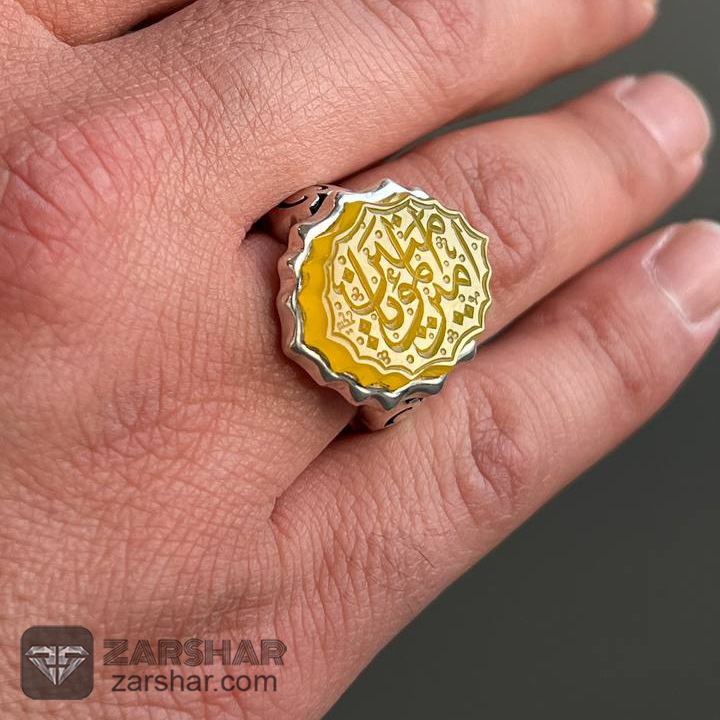 این انگشتر نفیس، با نگین عقیق زرد خراسانی درخشان و تراش زیبای شمسا، جلوهای از هنر و معنویت را به دستان شما هدیه میدهد. حکاکی ظریف “یا امیرالمومنین” بر روی نگین، این اثر را به گنجینهای ارزشمند تبدیل کرده است. رکاب شبکهای نقره با عیار ۹۲۵، اصالت و دوام این انگشتر را تضمین میکند.