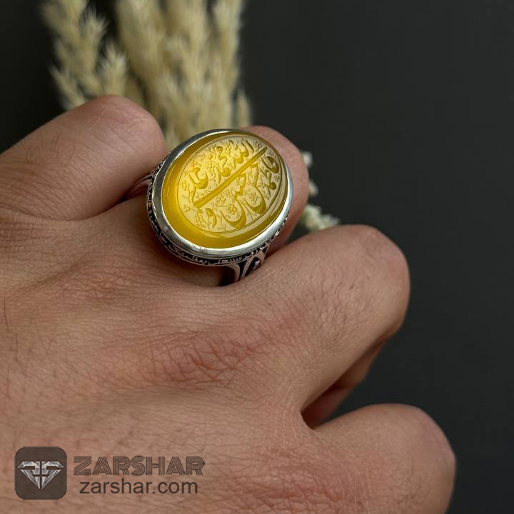 درخشش این انگشتر، نه فقط زینتبخش دستان شماست، بلکه بازتابی از نور و برکت در زندگیتان خواهد بود. نگین عقیق زرد با رکاب نقرهای منقش به اسامی متبرک، هماهنگی بینظیری از زیبایی و معنویت را به ارمغان آورده است. این انگشتر، فراتر از یک زیور، همراهی ارزشمند در مسیر زندگی شما خواهد بود.