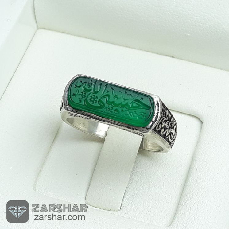 انگشتر عقیق سبز حسبی الله تراش کپسولی