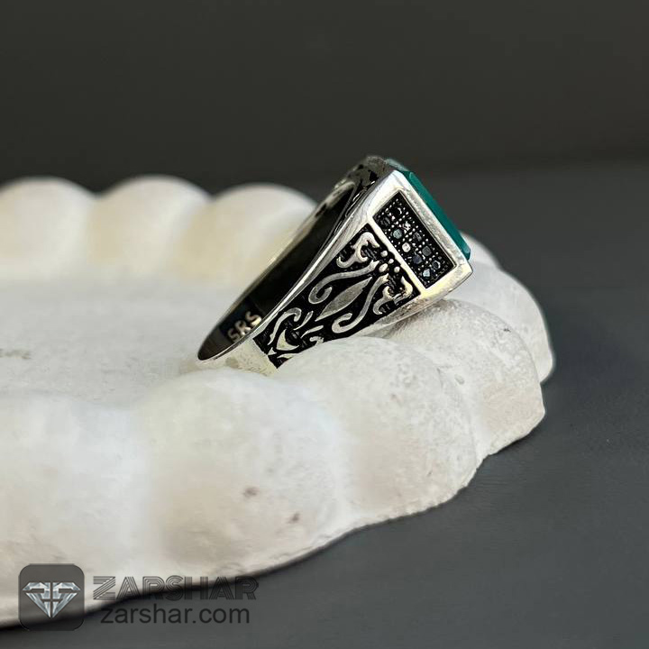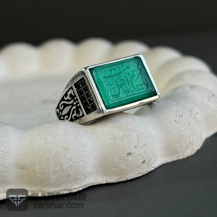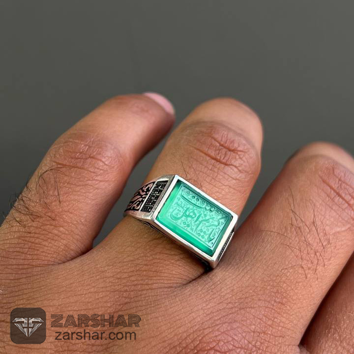 این انگشتر با نگین عقیق سبز لامپی اصل و رکاب نقره ۹۲۵ سوپر میکرو ساخته شده است. خطاطی درجه‌ یک «یا کریم اهل البیت» بر روی نگین، هنر دست استادان ماهر را به نمایش می‌گذارد. فروشگاه زرشار با افتخار، اصالت و کیفیت این محصول را تضمین می‌کند.