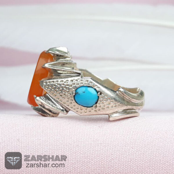 انگشتر عقیق یمنی پرتقالی هفت شرف مخراج فیروزه نیشابوری