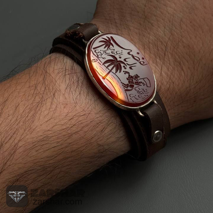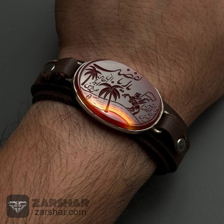 این دستبند نفیس، ترکیبی است از شکوه نقره، گرمای عقیق دورنگ و صلابت چرم طبیعی گاوی. نگارش هنرمندانه رجز حماسی حضرت عباس (ع) بر روی این دستبند، آن را به یادگاری ارزشمند و الهامبخش بدل کرده است.